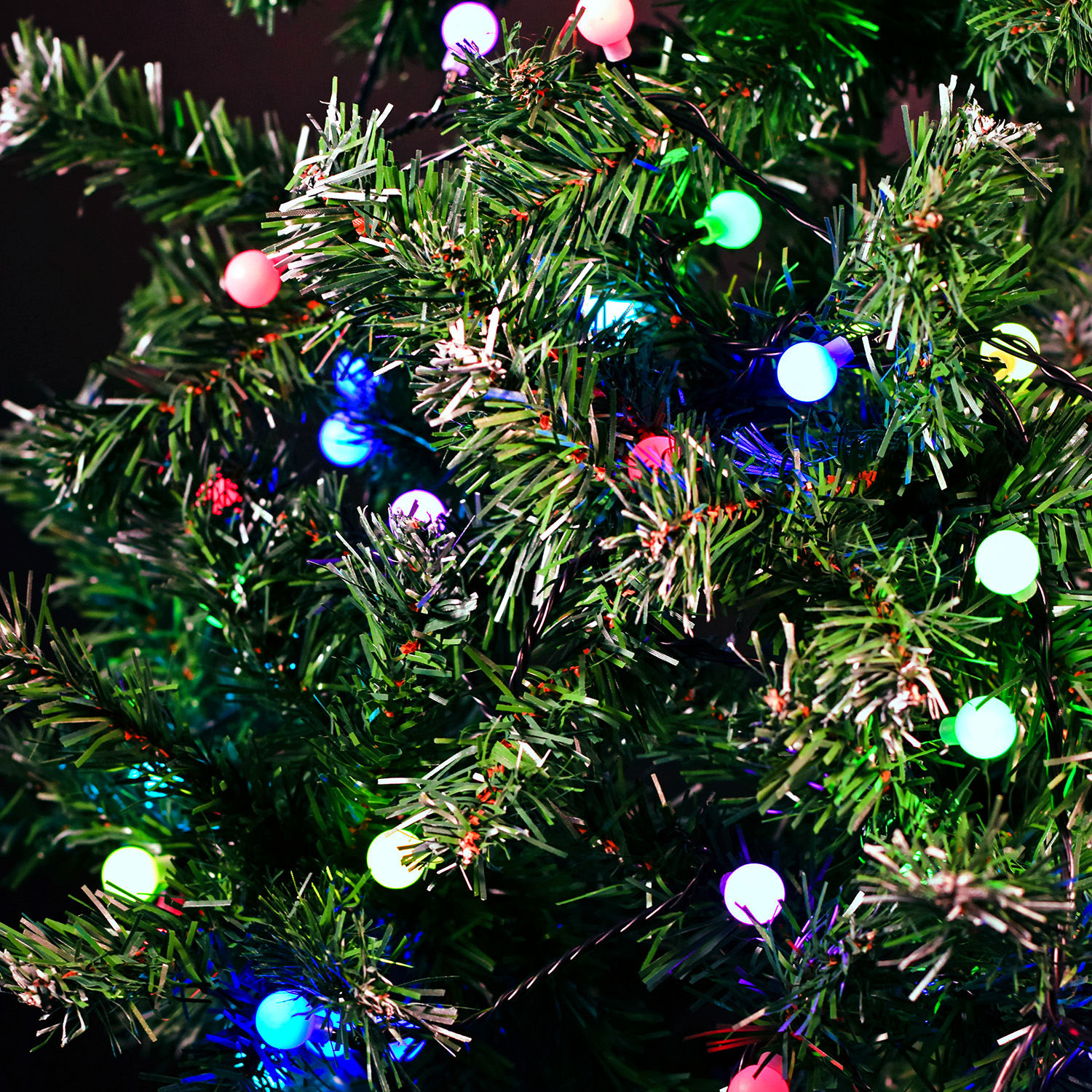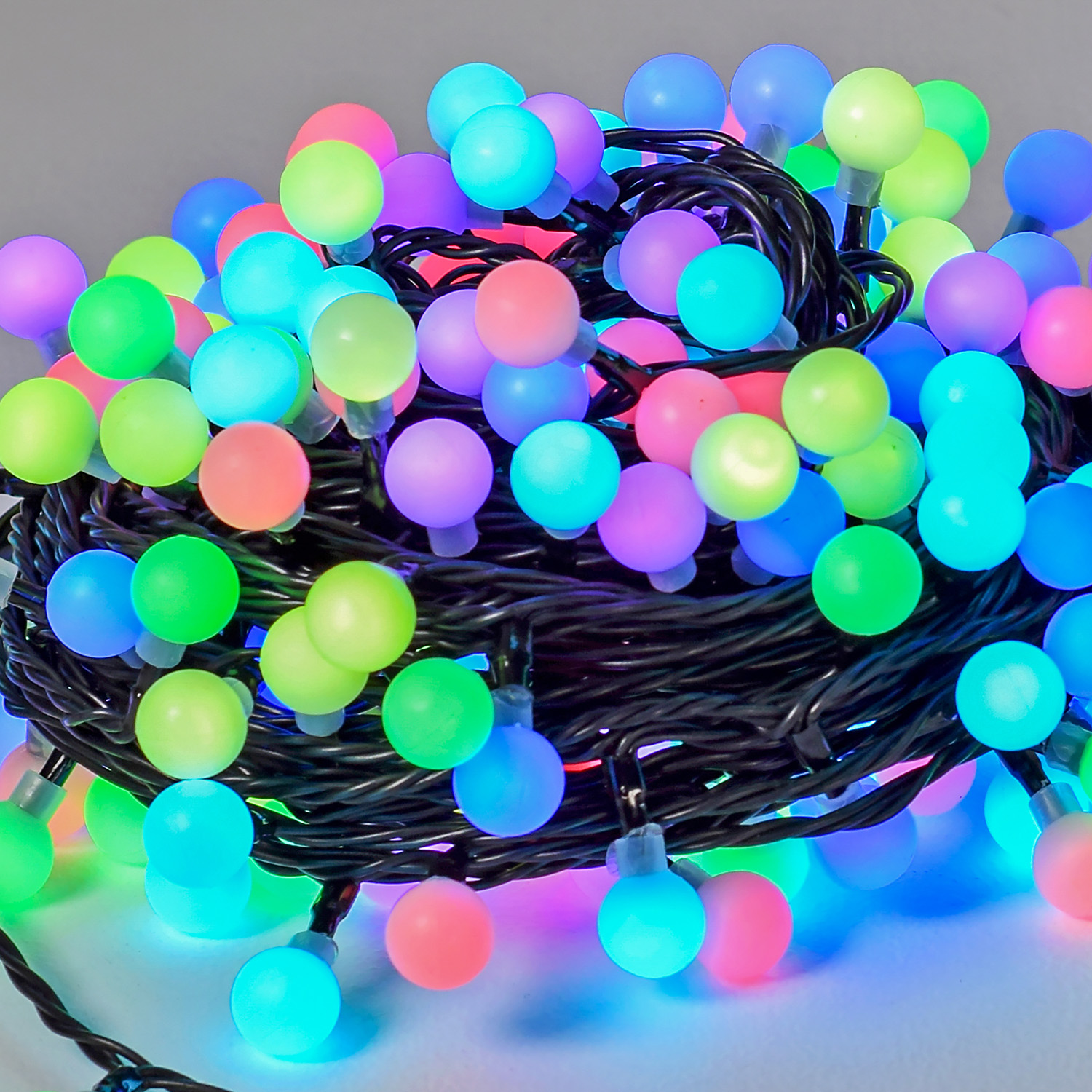 200 14mm Berry Lights in multi colours with a multi programme controller to select your desired light sequence. These lights feature a timer function, allowing the lights to illuminate for 6 hours and switch off for 18 hours. These Berry Lights have a 5m power lead and are IP44 rated so can be used indoors and in outdoor covered areas. Use the supplied remote control to select your favoured sequence and/or colour.